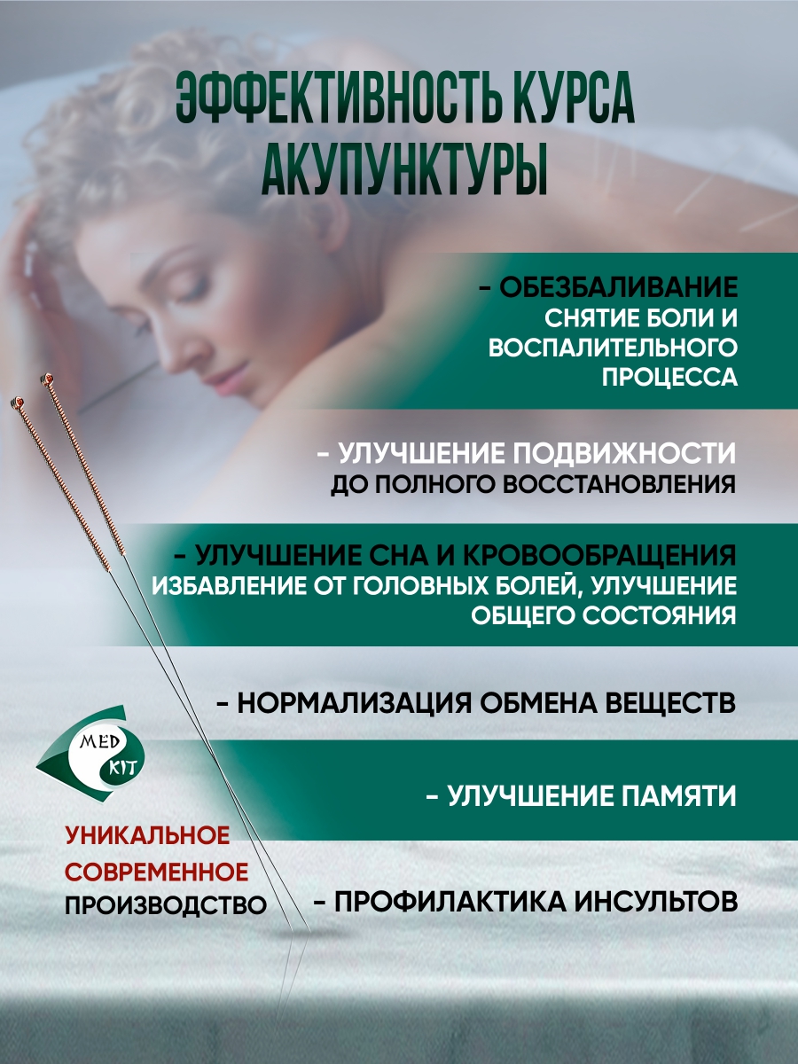 Технологичное современное производство обеспечивает иглам идеальную гладкую поверхностью и заточку в форме сосновой иглы, что гарантирует безболезненность постановки и эффективность процедуры.
